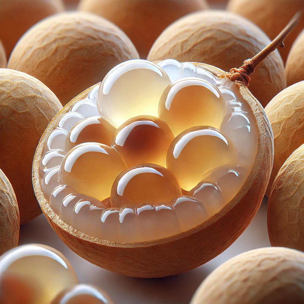 롱간(Longan)은 동남아시아에서 주로 재배되는 과일로, 열대 및 아열대 기후에서 자랍니다. '드래곤 아이(Dragon Eye)'라는 별명으로도 알려져 있는 롱간은 영양가가 높고 독특한 맛과 식감을 자랑합니다. 이 과일은 한국에서는 비교적 덜 알려져 있지만, 전 세계적으로 건강식품으로 주목받고 있습니다. 롱간은 작고 둥근 모양에, 외피를 벗기면 안에 있는 투명한 과육이 마치 눈처럼 보여서 붙여진 이름입니다. 리치와 비슷한 외형과 맛을 지니고 있지만, 단맛이 더 강한 것이 특징입니다.